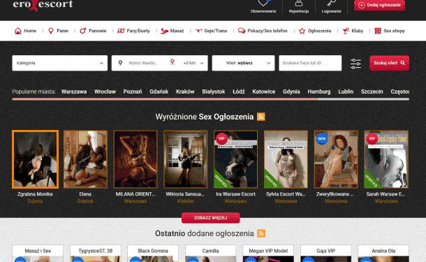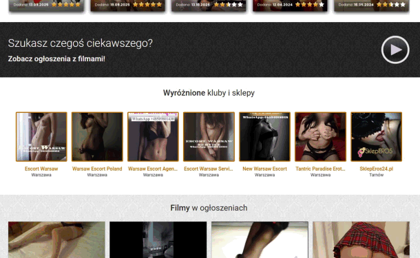 Portal zawiera ogłoszenia towarzyskie i anonse erotyczne. Materiały o tematyce erotycznej oraz filmy i zdjęcia z takimi treściami (prywatne ogłoszenia pań, panów, par, oraz oferty klubów). Jeśli nie ukończyłeś 18 roku życia lub nie życzysz sobie oglądania treści erotycznych, opuść tę stronę.